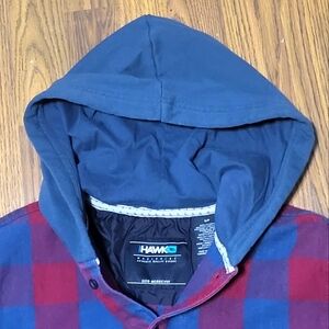 Tony Hawk Shacket Mens Multicolor Plaid Quilted Button Hooded Jacket Size S/P