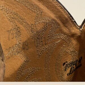 Tony Lama Conquistador boots, size 8 1/2 D. Model 7938. These are also the same boots used in The Walking Dead final seasons by Rick Grimes and found by Michonne.