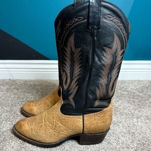 Step out in style with these tan and black western boots. Perfect for any occasion, these boots offer both comfort and durability.
