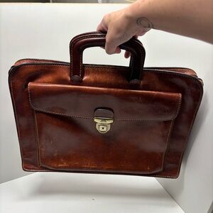 Tony Perotti Distressed leather satchel briefcase, suede lined