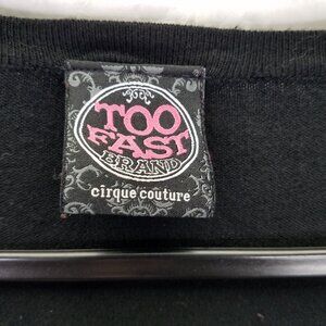 Too Fast Cardigan Womens XL Sugar Skull Bow Embroidery Button Stretch Knit Black