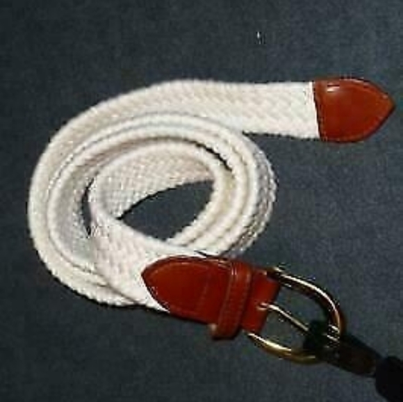 White Stretch Braided Belt with genuine leather by TALBOTS