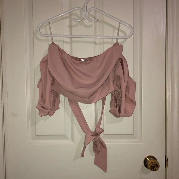 Top, light pink, off the shoulder, tie up back
