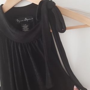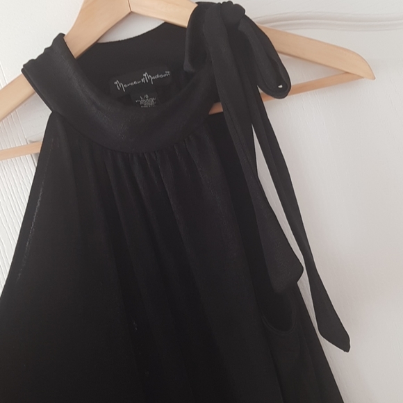 Black ..smimerring...very sexy...nice bow on side of neck...extremely flattering..