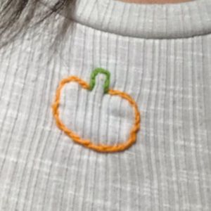 White top w pumpkin embroidery