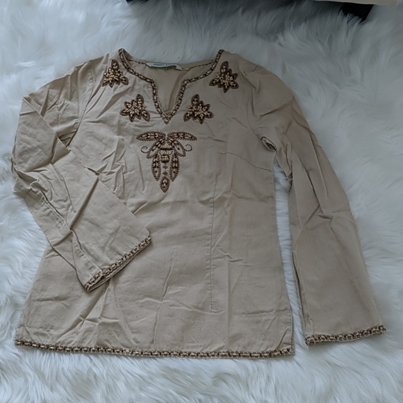 Beige V neck top with long sleeves. Like new. 55% linen 45% cotton
