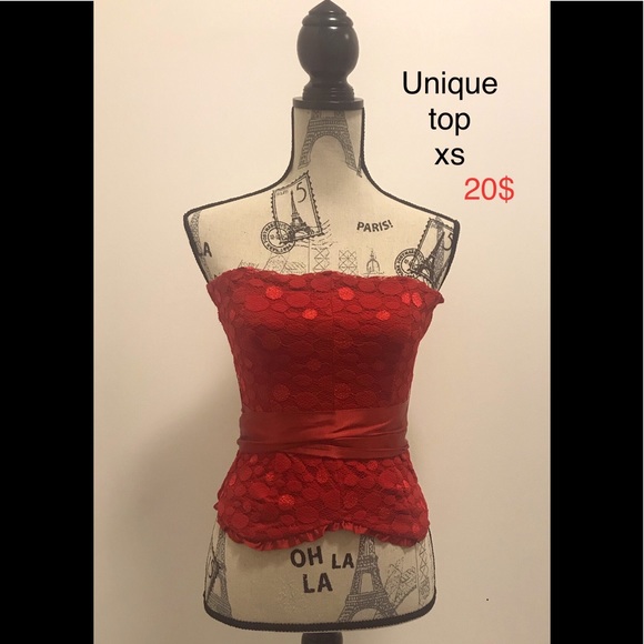 Unique sexy red top with silk belt