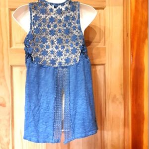 Super cute blue top. Lots of intricate designs on the back. Perfect for a summer day!