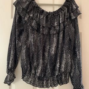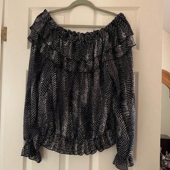 Black and white Polyester Can be worn on or off the shoulder Elastic bottom Worn 3 times