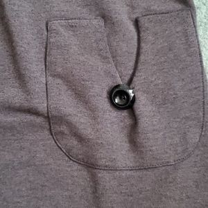 Good material. Grey colour. Buttons. Worn very few times. Size medium. Can style with a belt. Wear with any bottoms (fancy or casual).