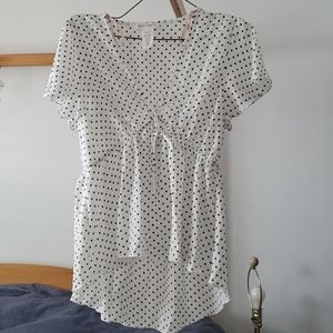 Cute. Polka dots. V-neck. Medium size. Never worn. Short flutter sleeves.