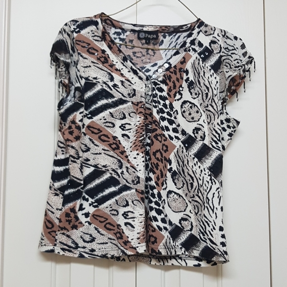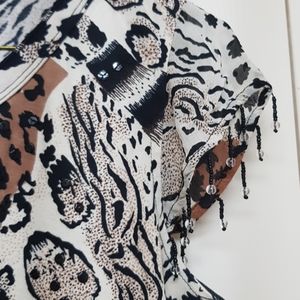 New, 100% cotton, v-neck, cap sleeve with fringe