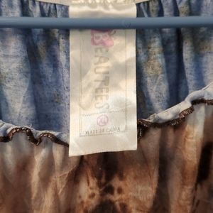 Drawstring adjustment at waist. Assymmetrical bottom hem line. Says XL, but fit is more of a medium IMO.