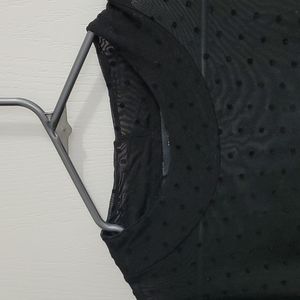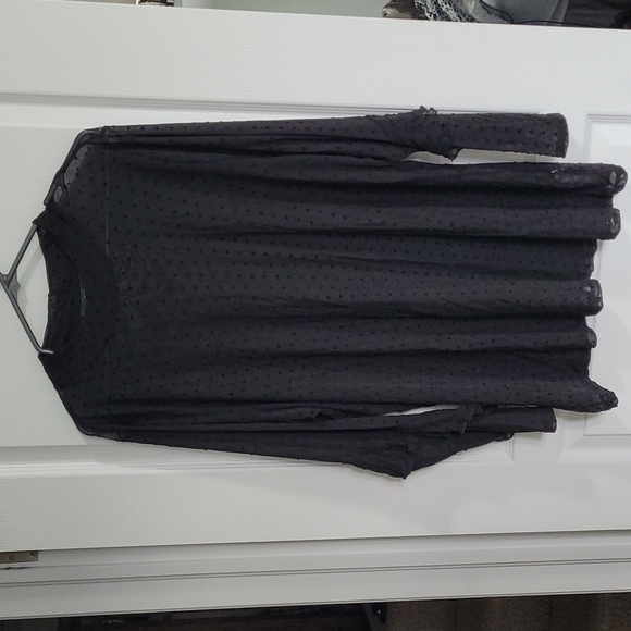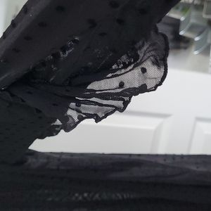 Sheer black long sleeves, ruffle from elbow to wrist. From neck 29'long x1 8width at the neck 28.5' from shoulder to wrist