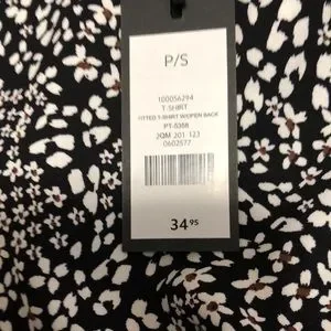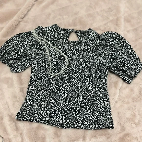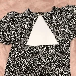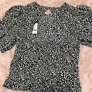 NWT Flowery top with beautiful backless detail indicated by white paper as seen in last picture. White flowers with brown middle, black background. Sits at waistband, can be worn untucked or tucked with a pair of jeans