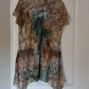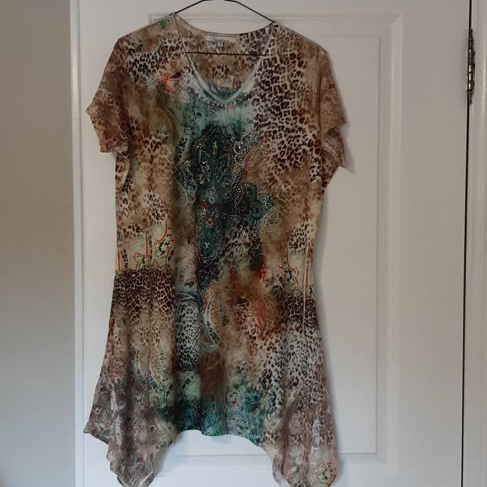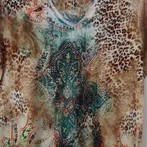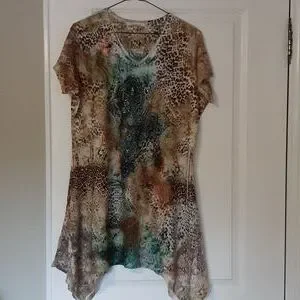 Tunic top short sleeve with sparkle pattern on front. Size M