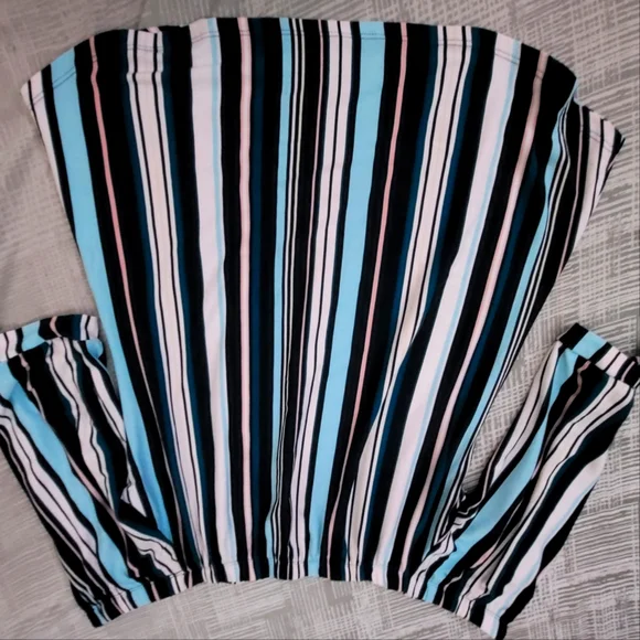 L Blue & White Striped Ardene Off-the-shoulder Top
