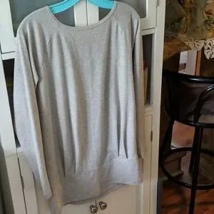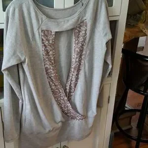 long sleeve with 4 pleats at front bottom. large waistband. sexy open back.