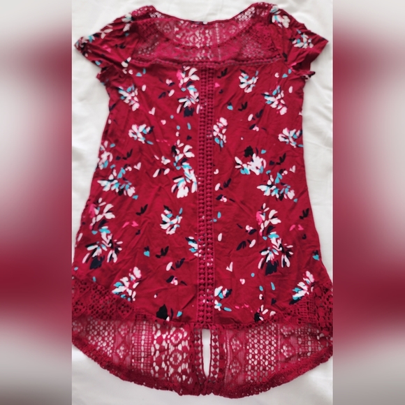 Red top. It's kind of stretchy and longer than a normal top.