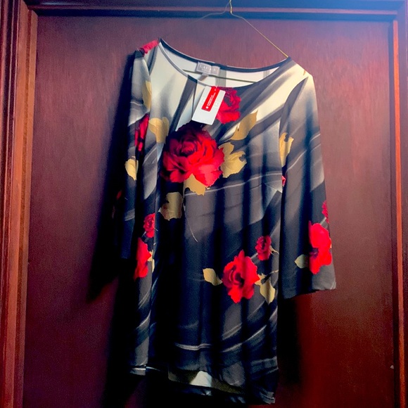 Beautiful top, in reds, greys, blacks and tan, never worn