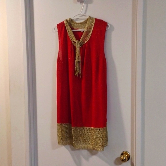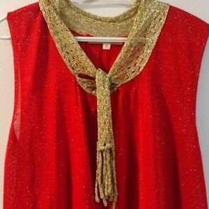 EUC. Worn once. Sheer. Gold glitter flecks sewn in. Like new. One thread pull at back top right by arm hole. Doesn't affect wear and easily fixable if necessary.