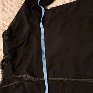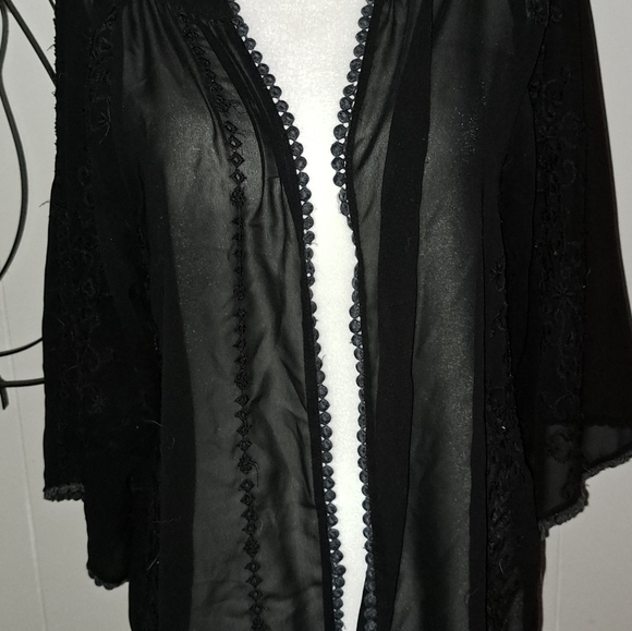 Lovely lightweight sheer jacket to wear to accessorize your wardrobe. Vertical embroidery pattern throughout , including on sleeves.