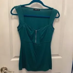 PattyBoutik teal sleeveless top with zipper detail. Never worn,.