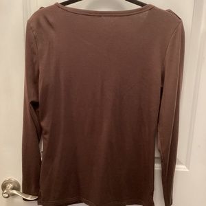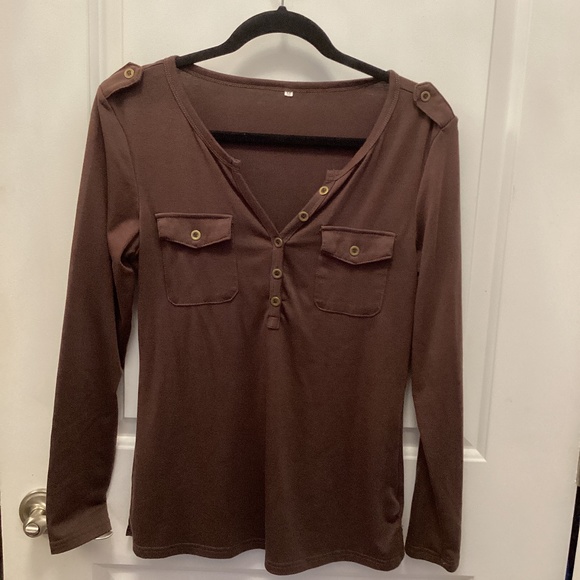 Brown top purchased on Amazon. Military style, casual, looks great with jeans.
