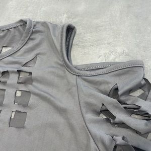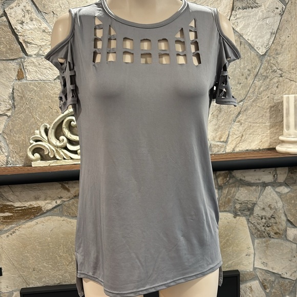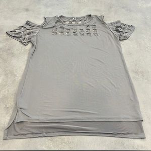 EUC top Size XL Grey cold shoulder Laser cut detail See photos for measurement details