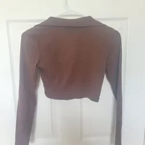 long sleeve v-neck collared ribbed top
