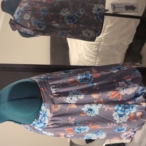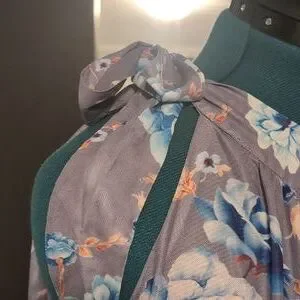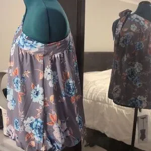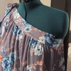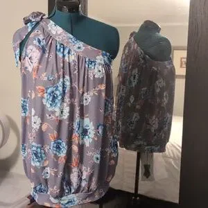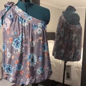 one shoulder top with tie bow. polyester stretch fabric and lined. with band at bottom on waist can be worn down or on waist. please see photos.