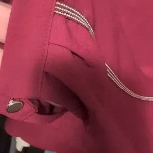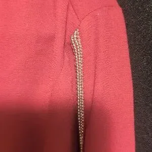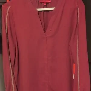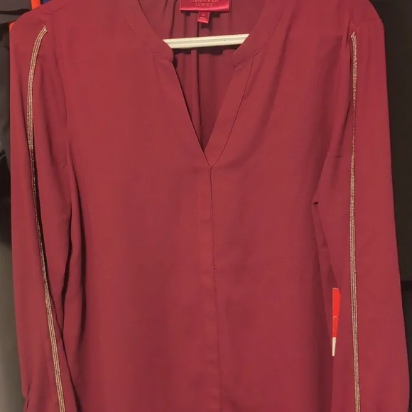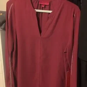 Jennifer Lopez size medium deep red burgundy color long sleeve top with beading along the sleeves from the shoulder to the sleeve with tiny little button on cuff. new with the tag