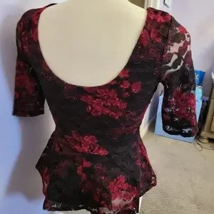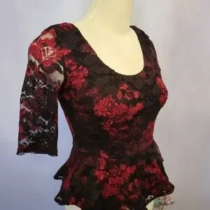 Red and black lace women's top medium-sized
