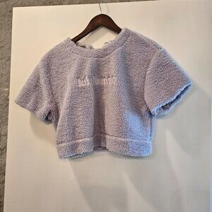 Stay cozy and stylish with this ultra-soft cropped tee from Lululemon. Designed for both comfort and street-style edge, this fuzzy fleece piece is perfect for lounging, post-workout layering, or casual outings.