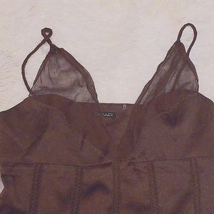 Sophisticated camisole by Tahari. 100% silk detail stitching on the front with shear straps that come down along the breat area.