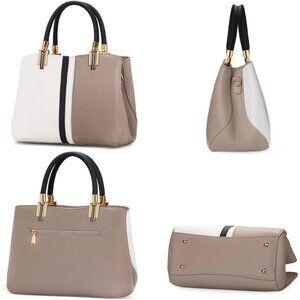 Top Handle Stitching Handbag for Women Girls Tote Satchel Khaki Shoulder Bag