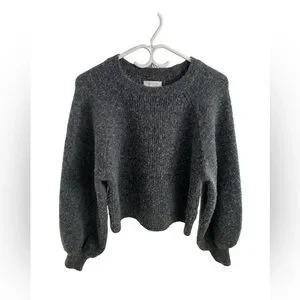 Dark grey crewneck sweater. Ribbed all throughout with balloon sleeves. Cuffs also have the ribbed finishing. Very stretch and fuzzy. Gently used, in good condition.