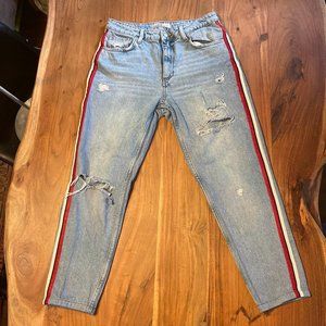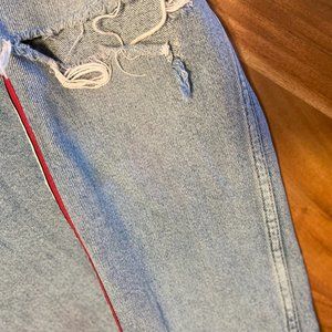 Machine Washable but would benfit from being ironed! Condition: Fair - light pink discolouration below right nee and on back of left leg. Size 28 Short . Fits Small
