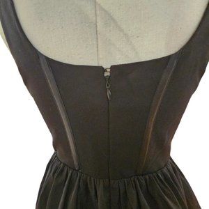 Black dress, corset style with parachute bottom.
