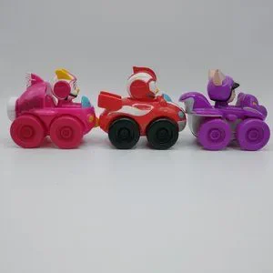 Set of 3 hard plastic cars 2.5" x 1.5" in size from 2018. In preowned played with condition with minor surface play wear and marks (see photos). Please note that the pink car has a lot of paint wear on it (see photos).