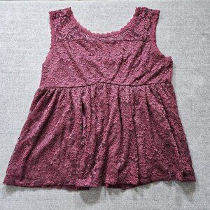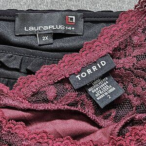 Top Womens 2X Lot Of 2 Black Burgundy Torrid Laura Ruffles Lined Lace Boho Party
