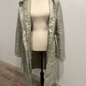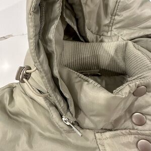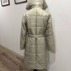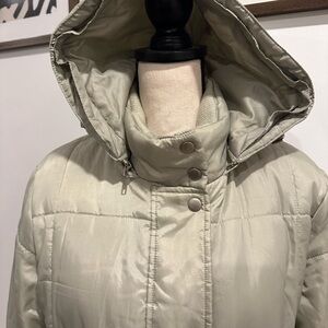 Top secret VTG long puffer jacket sage green SZ L EUC zip front hooded