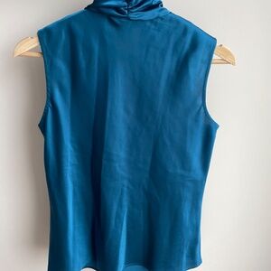 Inspired by tuxedo scarf silhouettes, it's a sage top which features a slim silhouette and a scarf that could be knot at the neck and drapes down. Pair it with a high-waisted skirt or tailored trousers for a sophisticated and stylish look on vacations, parties, and casual outings.