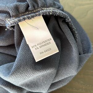 Banana Republic dark blue top with one side ruching. Keyhole button at back. Crepe stretch material. Excellent condition.