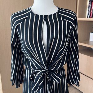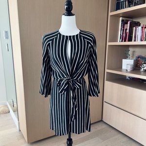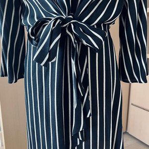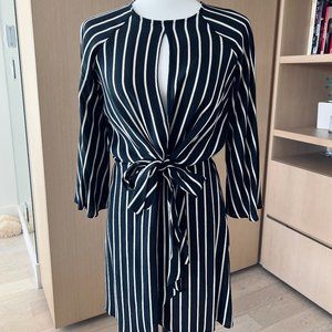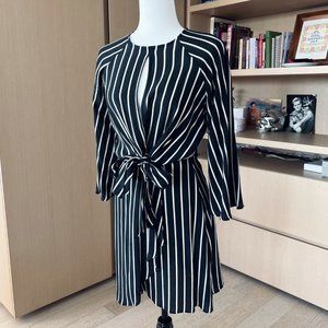 TopShop | Cut Out Wrap Tie Front Striped Dress | Size 4 | Black/Cream