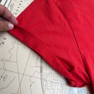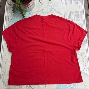TopShop tomato red crop top. Rolled sleeves and just-short-enough to call a crop. Tagged as a M/L, fit is oversized. Measures 22" across shoulders, 22" pit to pit, 23" long.