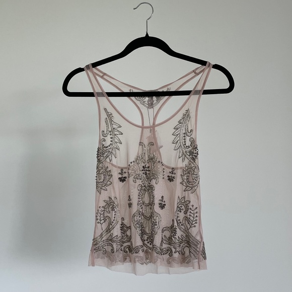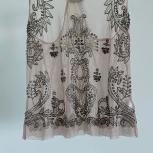 Mesh embroidery with sequins.
