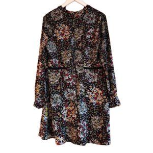 TopShop black floral print long sleeve dress in size US10 or UK14