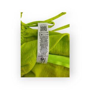 This is an edgy, trendy neon-green/lime green shirt from TopShop. It's deliberately crinkled in all the right places and you can adjust the front tie/drawstring in whatever way you like.