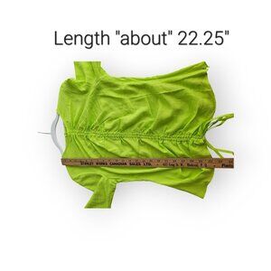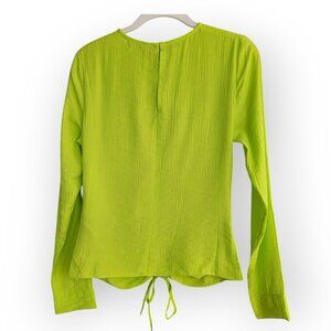 TopShop l/s mod stretch ruched front tie crop top in neon green lime NWOT size 4